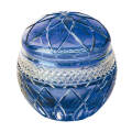 透明感のある青いクリスタルガラスに、花てまりをイメージした繊細なカットが施され、